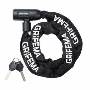 GRIFEMA GA1201-12 Lucchetto antifurto per bicicletta con chiave, lucchetto a catena per biciclette, moto, scooter, 120 cm, ne