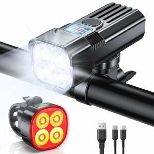 Mohard 2000LM Luci Bicicletta LED 3000mAh, USB Ricaricabile Potenti Luce Bici Posteriore e Anteriore Schermo LED, IP65 Imperm